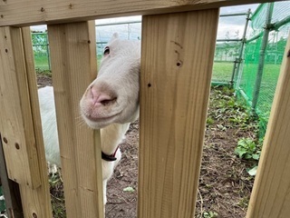 どんどん食べ進めてあっという間になくなってしまいました。メェー(もっと食べたいな)と用務員さんにお願いする、とのちゃんでした。