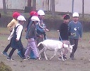 おや・・・グラウンドにはヤギと一緒に散歩をしている1年生の姿もありました。みんなで楽しい時間を過ごしました。