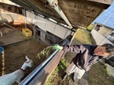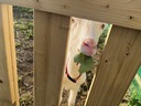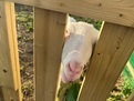 今日は、朝から晴れています。とのちゃんは小屋から出て、小屋の壁をカジカジしていました。よく見るとそこには、波板を固定するためのネジ釘がありました。いろいろなことに興味があるようです。