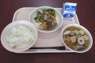 10月24日(金)の給食は、「新潟米の日」給食でした。10月25日は「いい(1) おこ(5)め にい(2)がたまい こ(5)しひかり こしいぶき」の語呂合わせで、新潟米の日となっています。今日のメニューは、ご飯、牛乳、ホキの唐揚げ香味ソースがけ、昆布和え、のっぺい汁でした。
