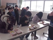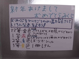1月29日(木)の休み時間は、図書館が子どもたちでいっぱいでした。ここ数日、戸野目書店(図書委員会)がイベントを行っています。本を借りるとくじを引くことができます。