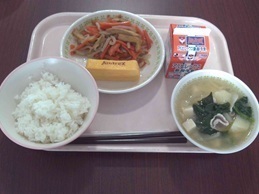 1月26日(月)から31日(金)は、上越にゆかりのスポーツ選手と食事の秘密の関係をテーマに取り上げた給食週間です。27日(火)は、アルビレックス新潟所属の早川史哉選手にちなんだメニューでした。ご飯、アルビ牛乳、アルビ焼印入り厚焼き卵、人参の夕日きんぴら、元気アップ味噌汁をいただきました。