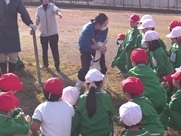 子どもたちは耕した後の土の感触を確かめて、野菜づくりに適した土の様子を感...