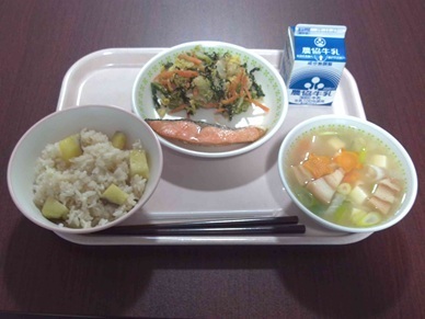 11月21日(金)は、ふるさと献立として、上越で採れたサツマイモとお米で...