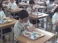 健康パワーアップ委員会では、給食週間に伴って「豆つかみ大会」をしてくれました。26日(月)から29日(水)まで2学年ごとに有志が参加しました。