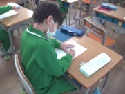 4年生教室では、課題のプリントに集中して取り組んでいました。...