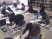 3年生以上は、毛筆による書き初めです。学年ごとの課題に向かって、集中して...